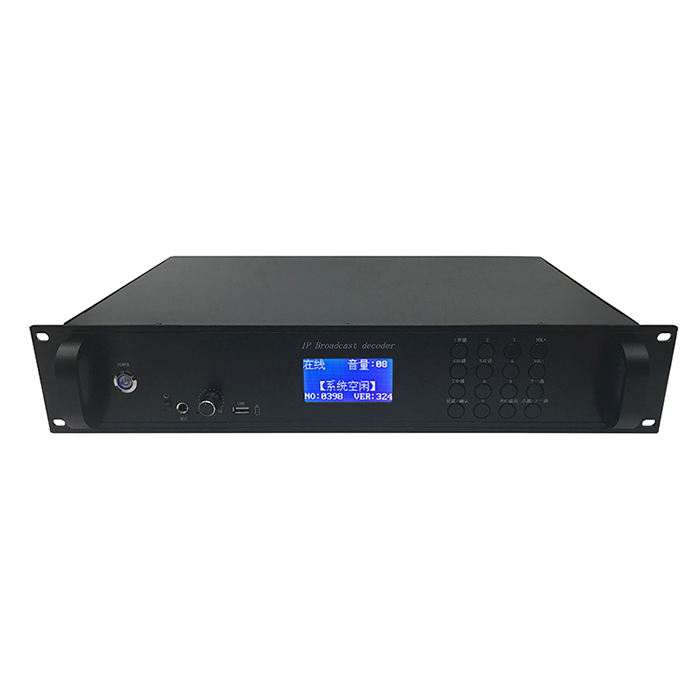 2.4.3 inch big screen real-time display of program broadcast, timing broadcast, device operation, IP address, firmware version and other status information.